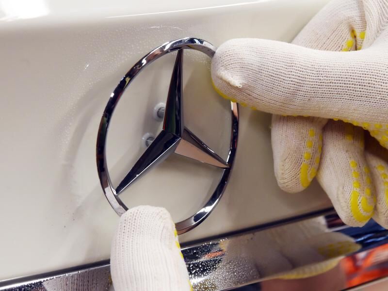 Im Werk der Daimler AG in Rastatt wird an einer Mercedes-Benz A-Klasse der Mercedes-Stern angebracht. Foto: Uli Deck/Illustration