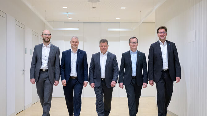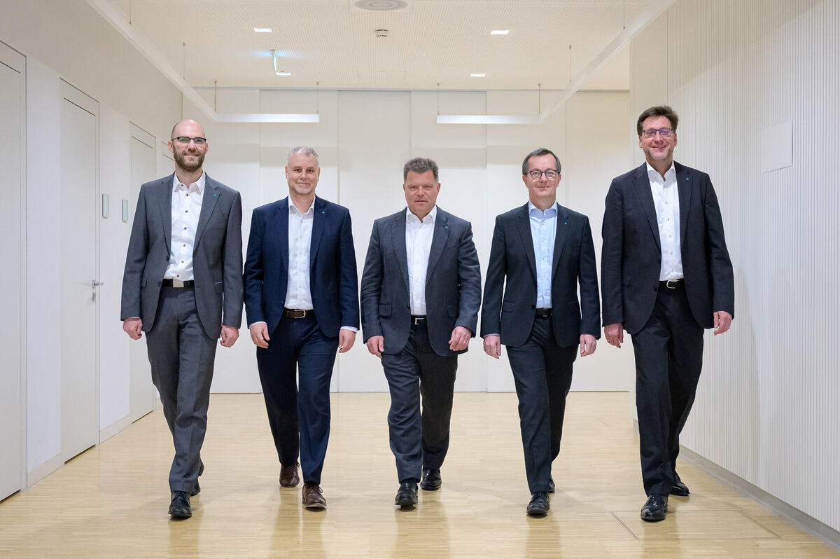 Die neue Erbe-Geschäftsleitung von links: Helmut Scherer (CTO), Marcus Felstead (CMO), Christian Erbe (CEO), Daniel Zimmermann (CFO) und Markus Enderle (CSMO)