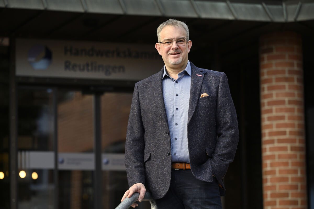 Alexander Wälde, neuer Präsident der Handwerkskammer Reutlingen, vor dem Kammergebäude an der Hindenburgstraße.