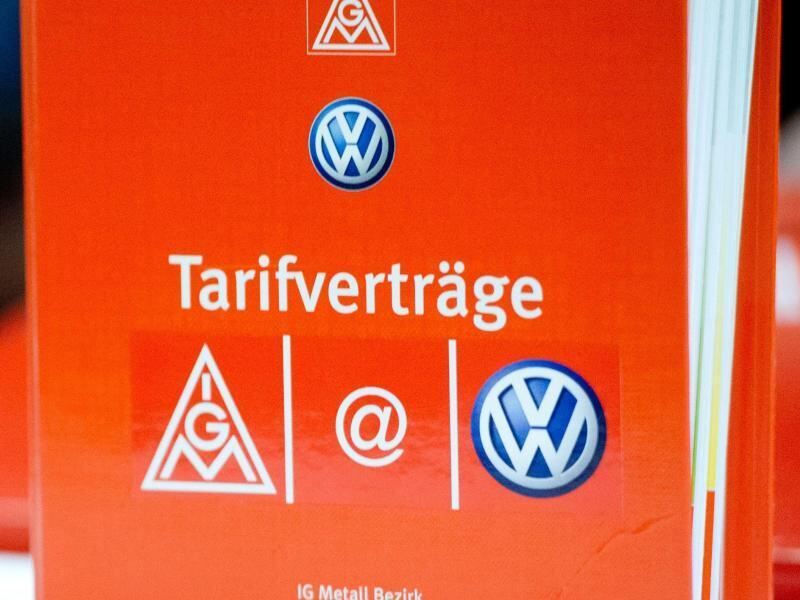 Eine Ausgabe der Tarifverträge zwischen Volkswagen und IG Metall. Foto: Sebastian Kahnert