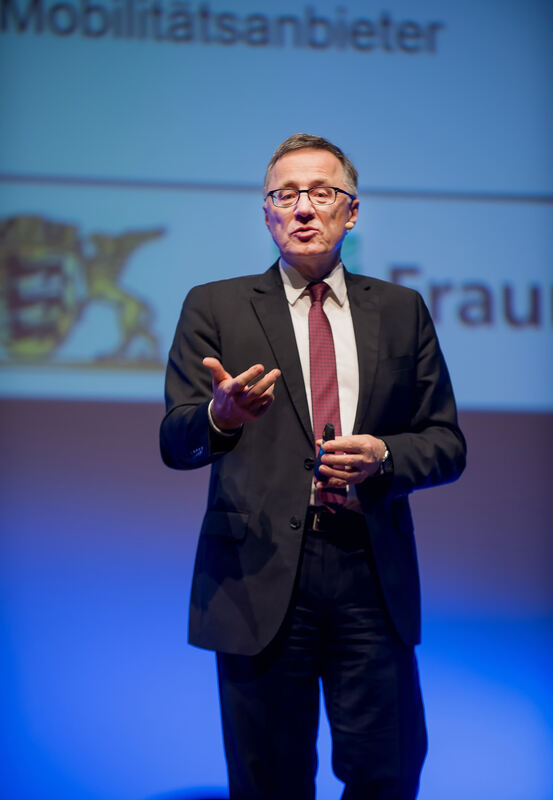 Professor Wilhelm Bauer bei seinem Vortrag beim Neujahrsempfang der beiden Reutlinger Wirtschaftskammern in der Stadthalle Reutlingen.