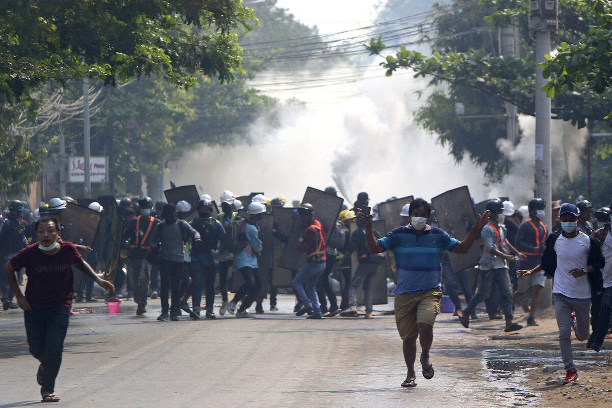 Das Militär setzt Tränengas bei Protestmärschen in der Millionenmetropole Myanmar ein.