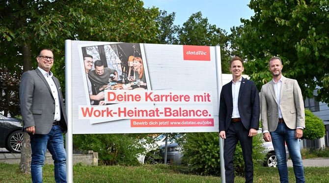 Datatec versucht, seine Arbeitgebermarke zu stärken, um über 20 weitere Mitarbeiter alleine in Reutlingen zu finden, wie Vertriebsleiter Jörg Scholl, Vorstand Markus Kohler und Marketingleiter Roland Bertler (von links) bei einem Pressegespräch erläuterten.