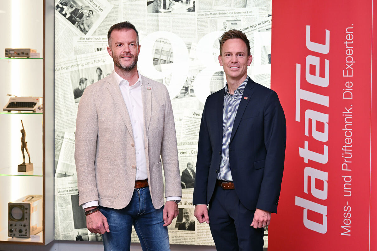 Vorstand Markus Kohler (rechts) stellt erstmals zusammen mit Roland Bertler, Leiter Marketing, die Jahreszahlen der Datatec AG vor. Kohler übernahm die Unternehmensführung im Januar von Datatec-Gründer Hans Steiner. FOTO: PIETH