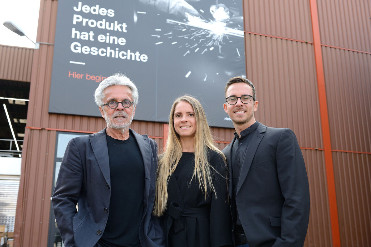 Max Maier senior mit seinen Kindern Madlen Maier und Max Maier junior im Rieber-Werk in Reutlingen. FOTO: PIETH