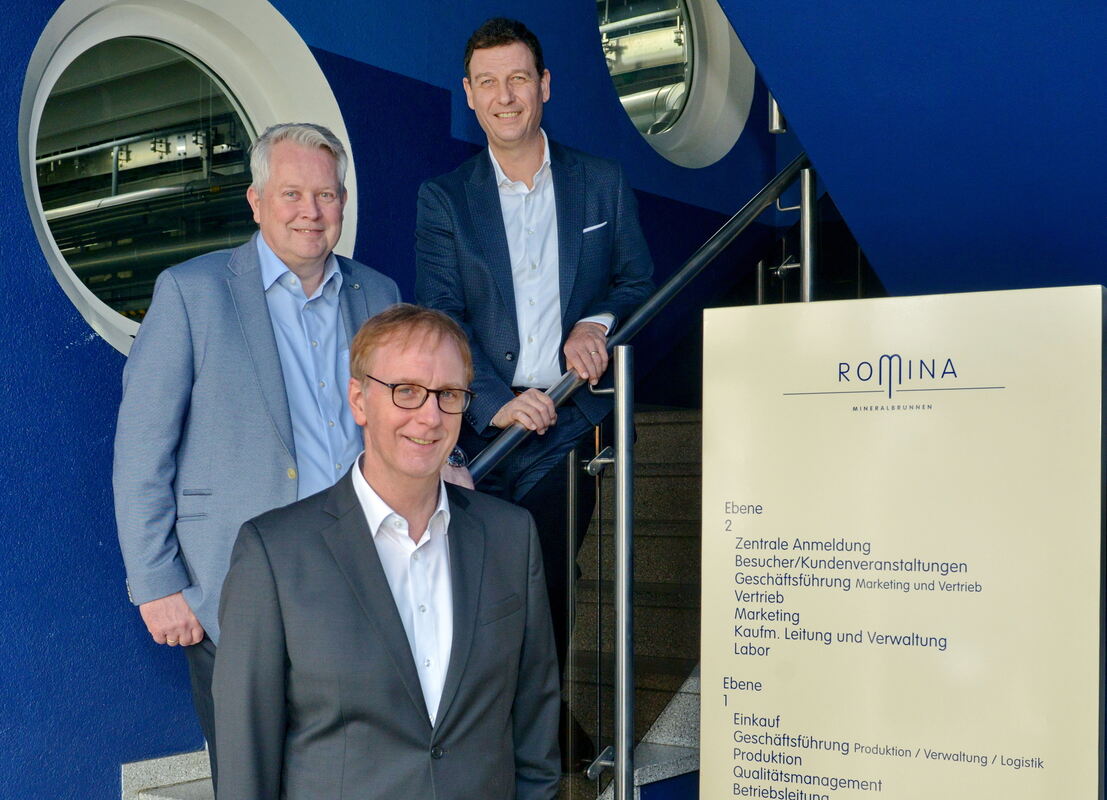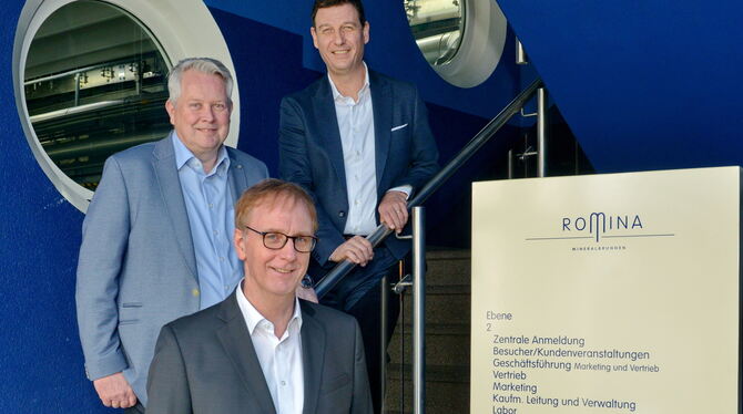 Achim Jarck (vorne) hat eine sehr erfolgreiche Zeit bei Romina gehabt. Unser Foto zeigt ihn mit seinem langjährigen Geschäftsführerkollegen Stefan Gugel (links) und seinem Nachfolger Andreas Mayer.