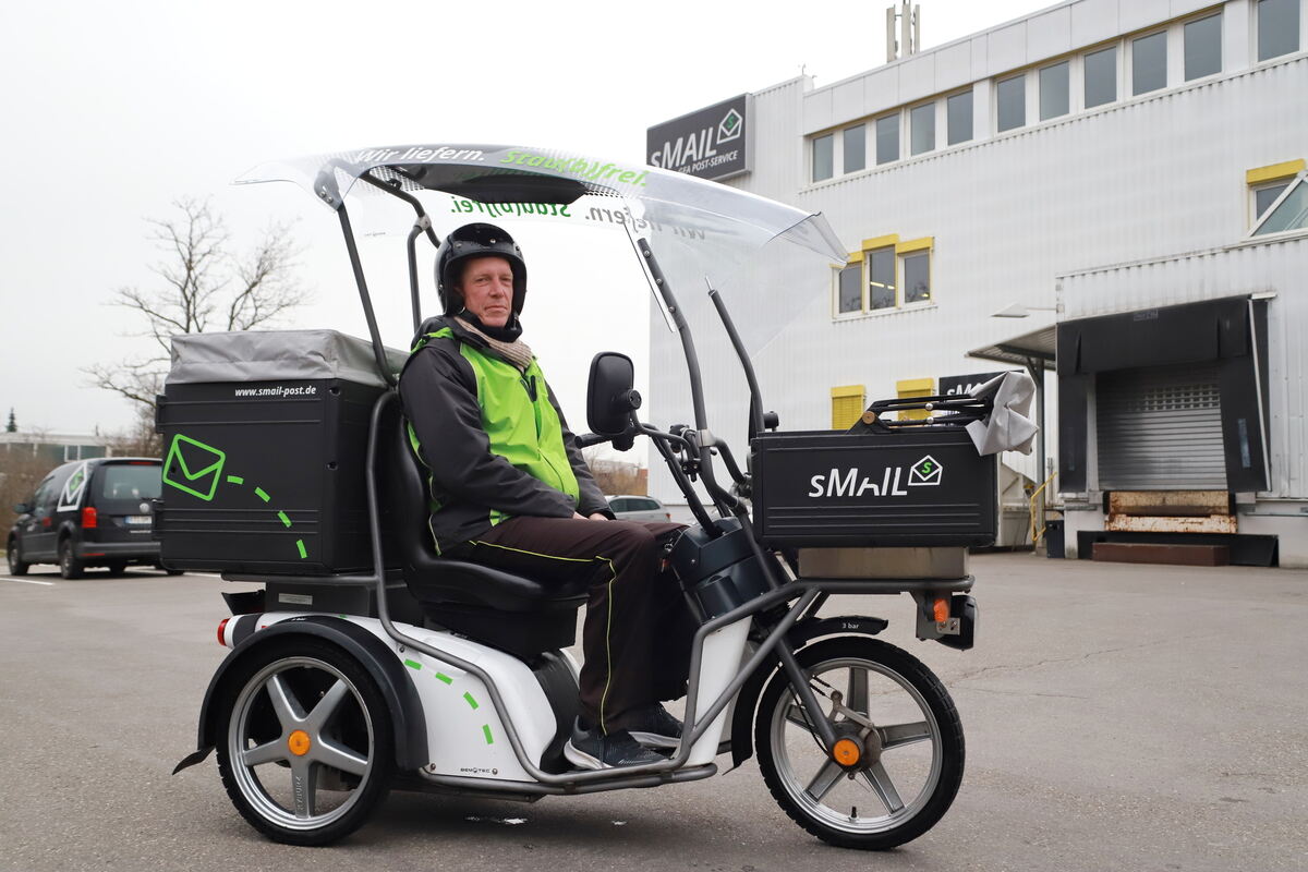 Dino Del Borgo, Zusteller von S-Mail/GEA Post-Service, ist mit einem Elektro-Dreirad unterwegs. FOTO: REISNER