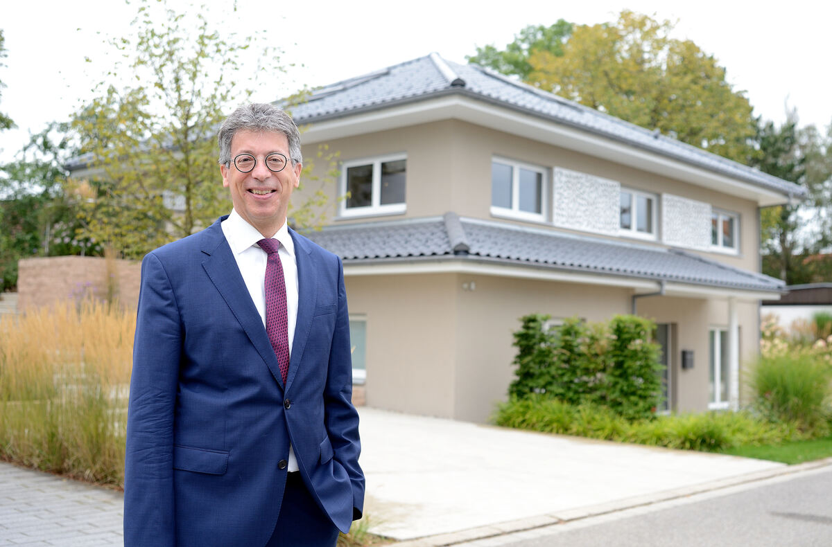 Johannes Schwörer, geschäftsführender Gesellschafter des Fertighausherstellers Schwörer, aufgenommen vor einem neuen Musterhaus im Musterhauszentrum am Unternehmenssitz in Hohenstein-Oberstetten. FOTO: PIETH