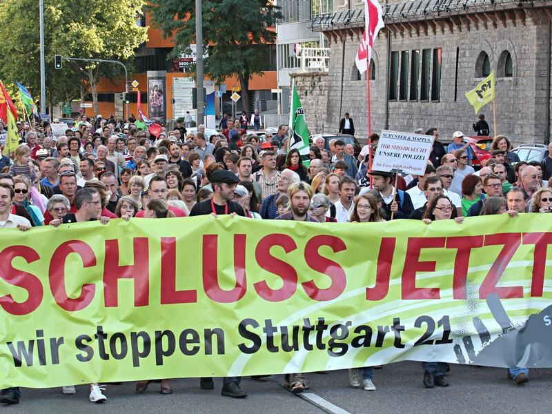 Demonstranten protestieren gegen das umstrittene Bahnprojekt Stuttgart 21.