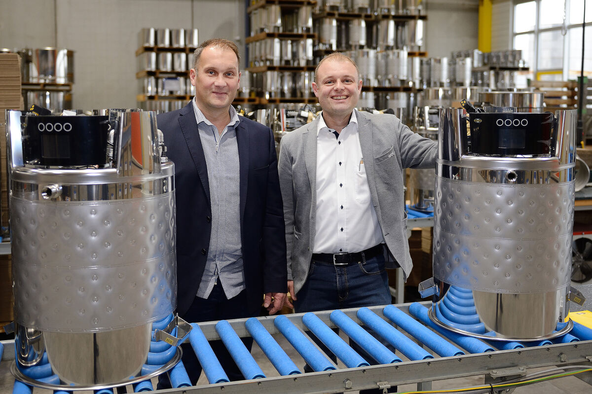 Die Geschäftsführer Stefan (links) und Fabian Speidel, aufgenommen in der Produktion von Bierbraugeräten. FOTO: PIETH