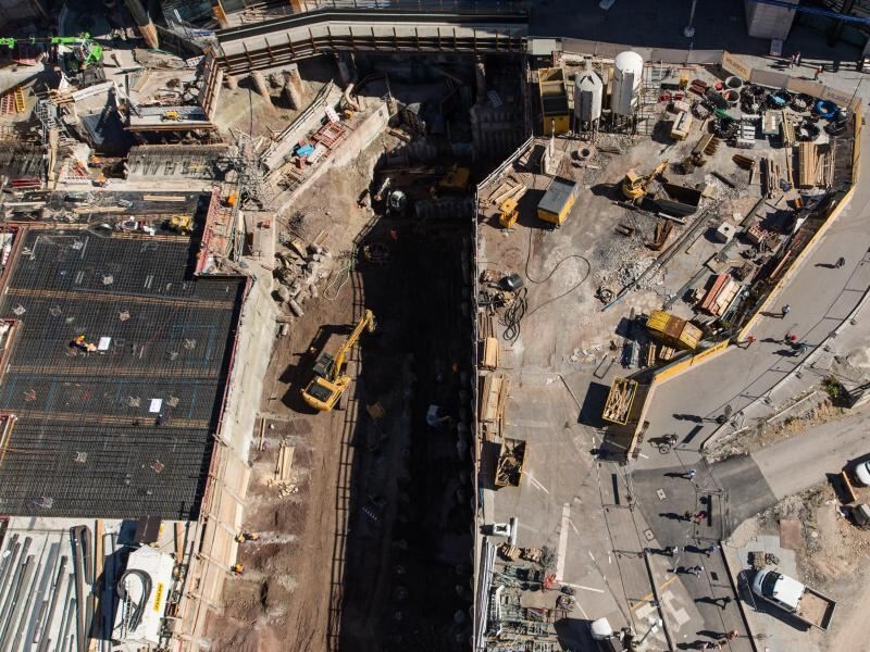 Die Baustelle des Bahn-Großprojekts Stuttgart 21 - aufgenommen aus einem Baukran. Foto: Silas Stein