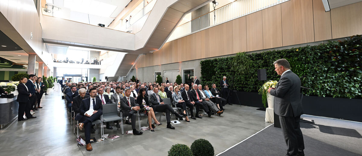 Eröffnungsfeier für das neue Werk der Tübinger Unternehmensgruppe Erbe in Rangendingen: rechts Firmenchef Christian Erbe, in der ersten Reihe FDP-Vorsitzender Christian Lindner (Vierter von links) und rechts neben ihm die baden-württembergische Wirtschaftsministerin Nicole Hoffnmeister-Kraut