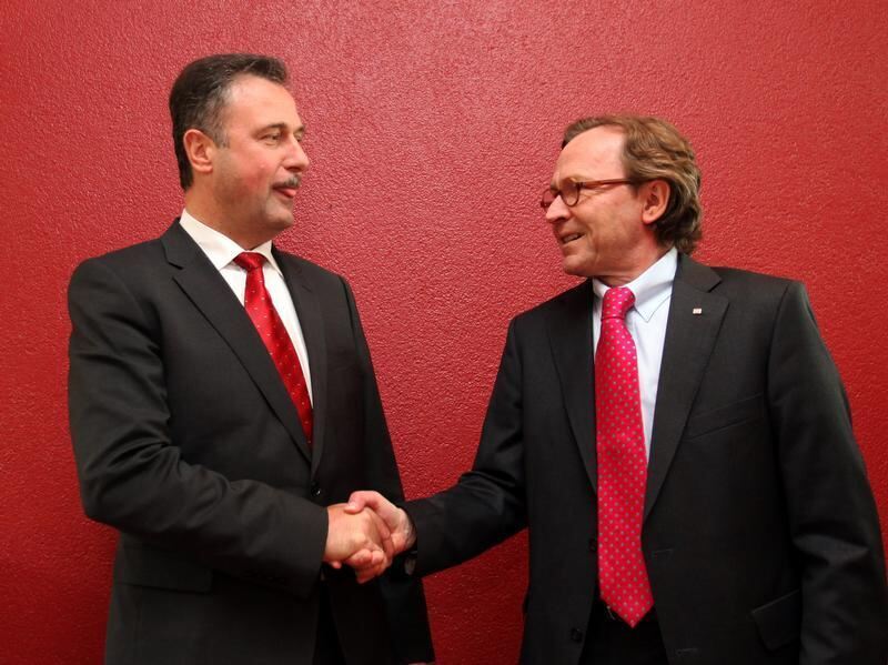 Einigung im Tarifkonflikt: Der Personalvorstand der Deutschen Bahn, Ulrich Weber (r), und der Bundesvorsitzende der GDL, Claus Weselsky.