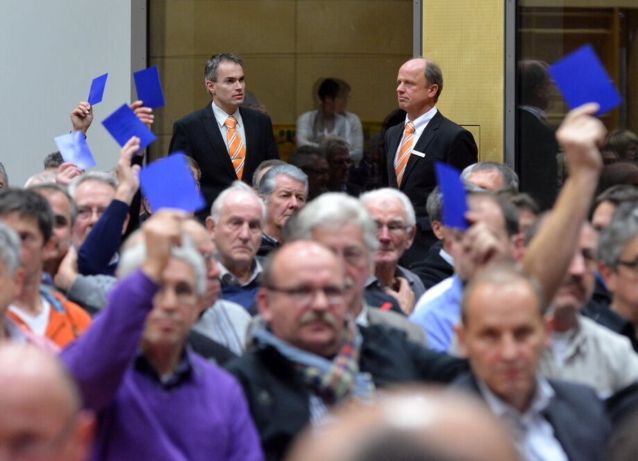 Die offenen Abstimmungen der Volksbank-Vertreter in Münsingen mit blauen Karten fielen eindeutig aus, die geheimen später ebenso.