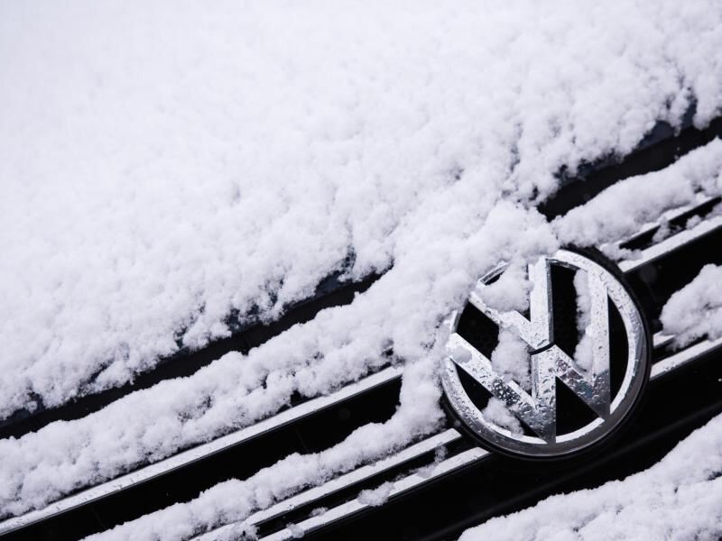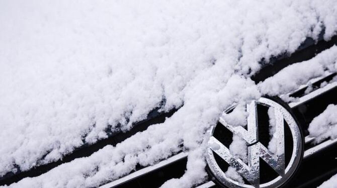 Ein eingeschneiter Volkswagen Tiguan steht in Lübeck bei einem Autohändler. Foto: Daniel Bockwoldt