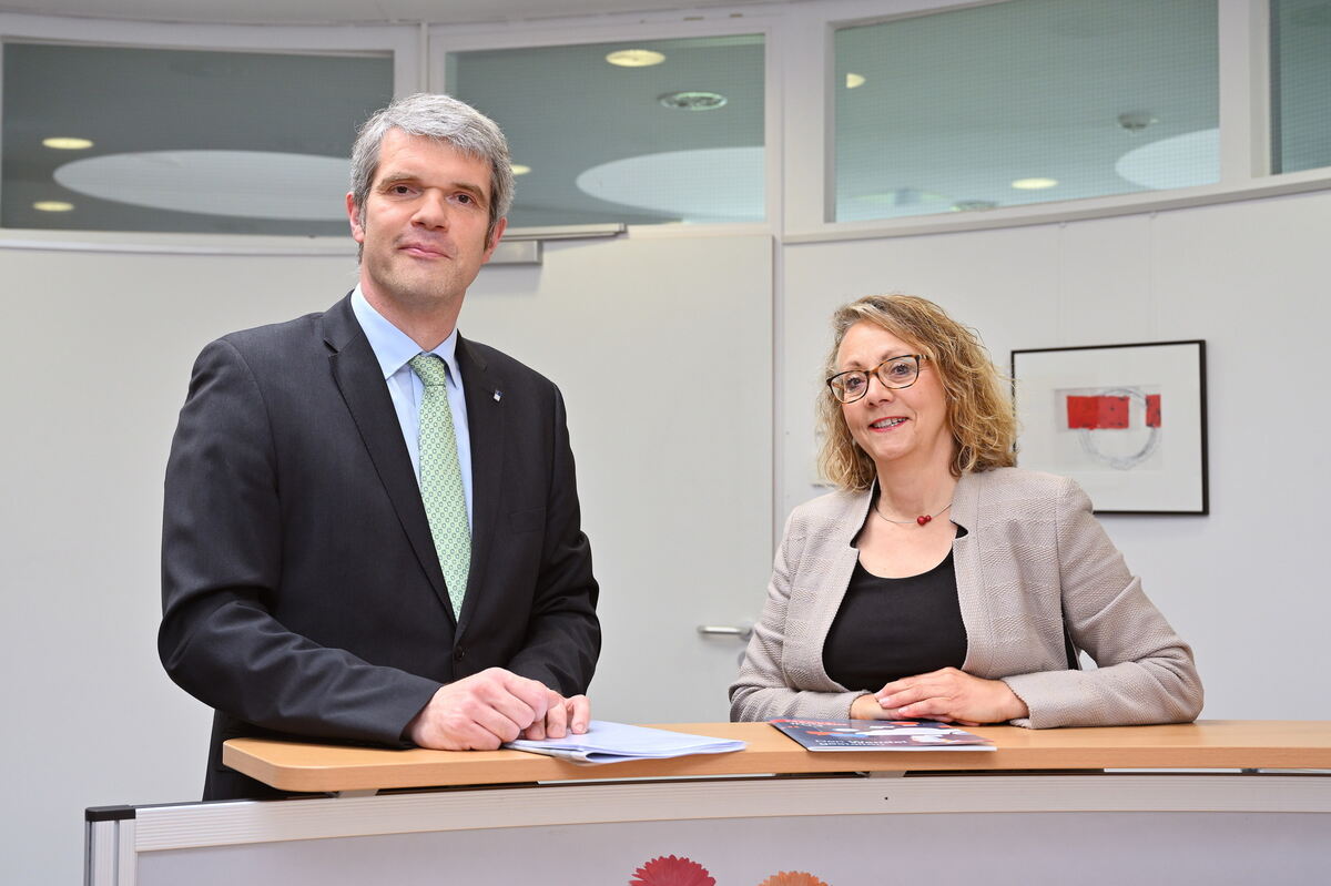 Berichteten im Gespräch mit dem GEA über die Arbeit des Dienstleistungsausschusses der Industrie- und Handelskammer (IHK) Reutlingen: die ehrenamtliche Vorsitzende Sabine Dörr und der stellvertretende IHK-Hauptgeschäftsführer Christoph Heise.