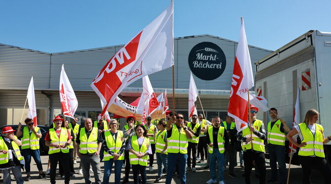 Peter Stauche, Betriebsratsvorsitzender von Bäckerbub in Reutlingen, sagte dem GEA: »Alle haben dichtgehalten. Daher war das heute eine Überraschung für unser Management. Wir sind eine sehr starke Gemeinschaft. Das Angebot der Firma kam in der Belegschaft überhaupt nicht gut an.« Bäckerbub in Reutlingen beliefere über 200 Abnahmestellen, überwiegend »Marktbäckereien« (früher: K&U-Filialen) in Edeka-Märkten. NGG-Landesbezirkssekretär Münchow fügte hinzu, dass die Öfen an diesem Tag für acht Stunden kalt geblieben seien und stellte fest: »Wir sind bereit, den Arbeitskampf auszuweiten.« (GEA)
