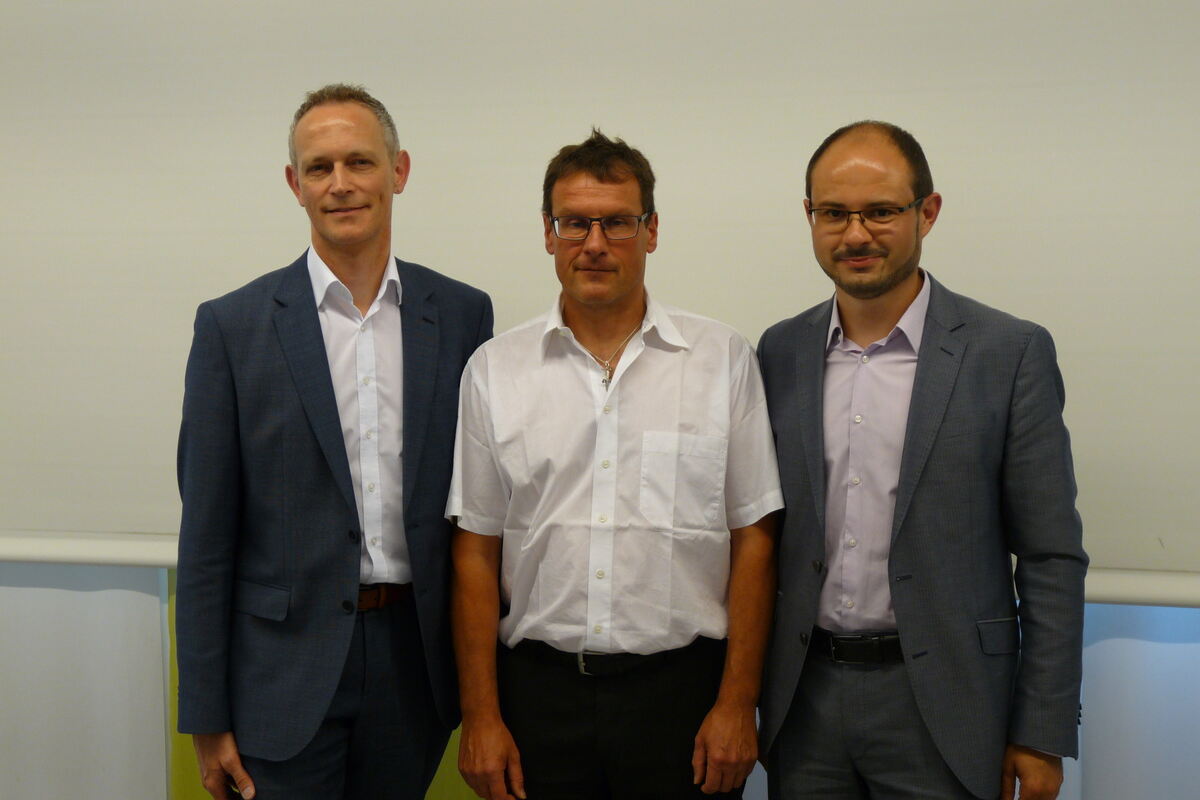 Aufsichtsratschef Bernd Höhn flankiert von den Vorständen Peter Edelburg (links) und Arthur Göllner. FOTO: HÄRING
