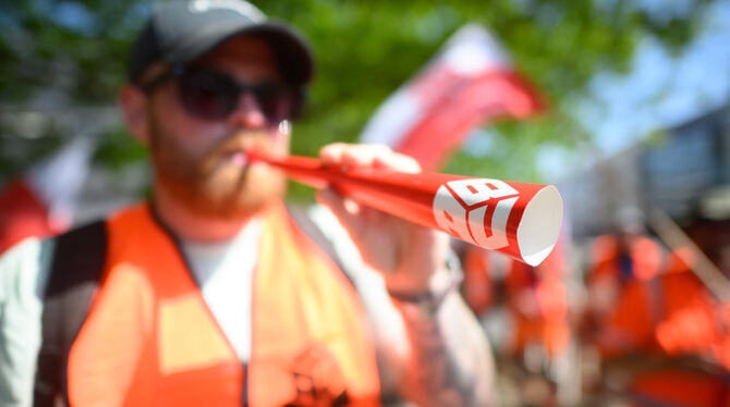 Beschäftigte des Bau-Gewerbes streiken an einer Rohrleitungsbaustelle in der Region Hannover.