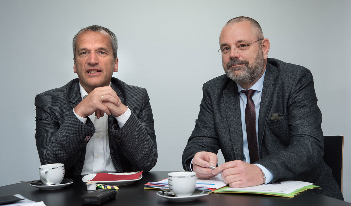 Vorsitzender Michael Hennrich (links) und Geschäftsführer Ottmar Wernicke von Haus & Grund Württemberg. FOTO: TRINKHAUS