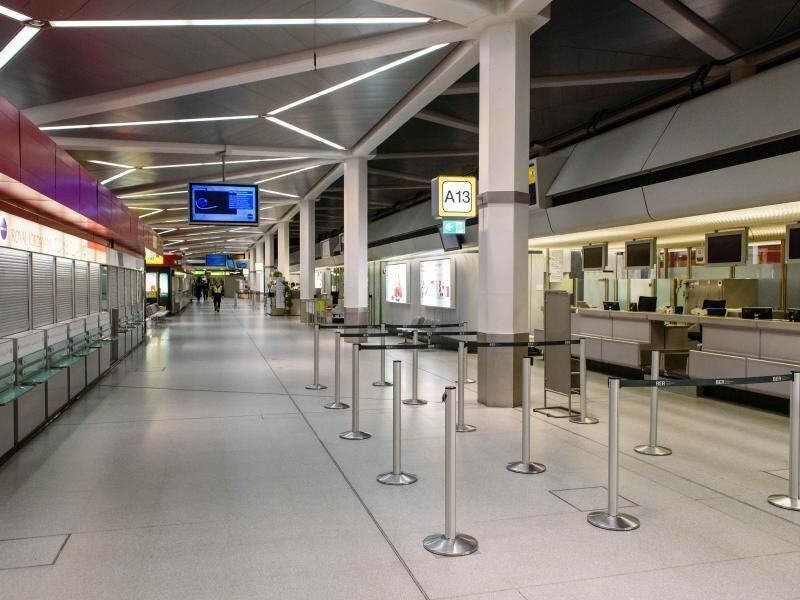Menschenleerer Check-in-Schalter auf dem Flughafen Tegel in Berlin. Foto: Gregor Fischer