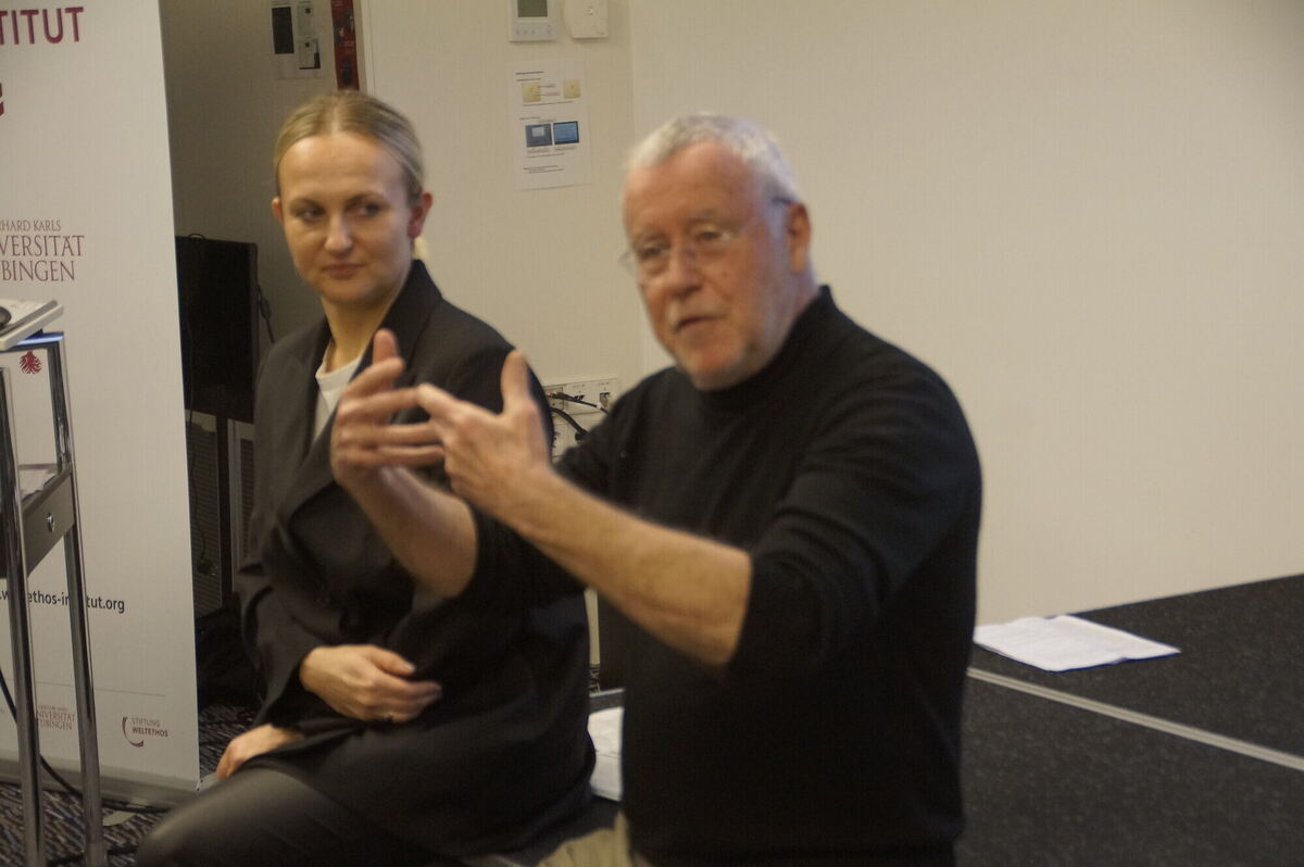 Magda Szabert und Gunnar Laufer-Stark diskutierten im Weltethos-Institut.