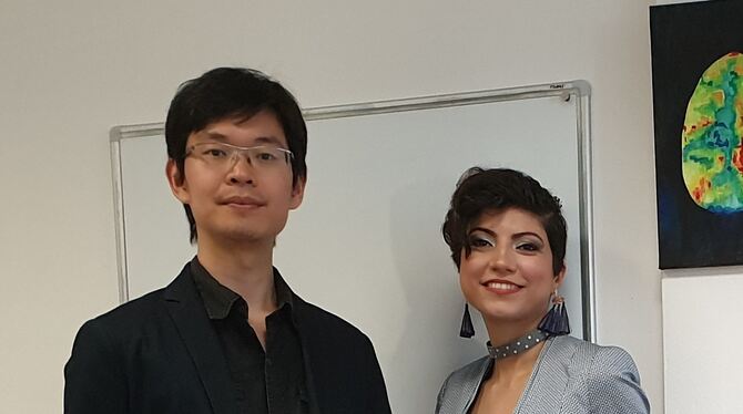 Die Gründer Paul Chang und Sahar Nassirpour mit ihrem Prototyp. FOTO: MR SHIM
