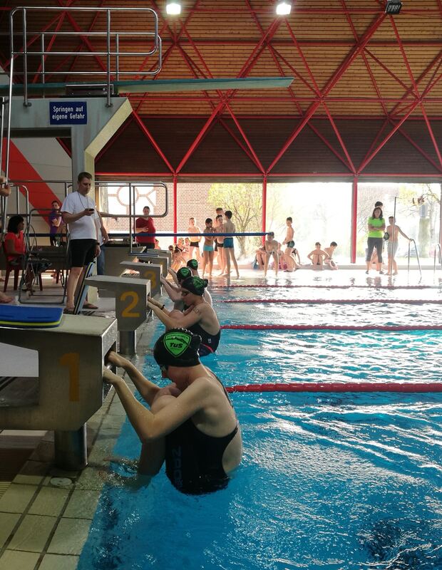 Kurz vor dem Start: Schwimmerinnen der TuS Metzingen im Eduard-Kahl-Bad