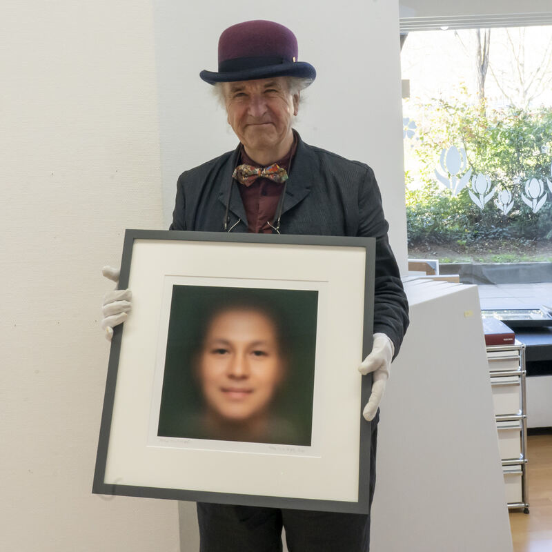 Nun legt Helzle das Bild »Homo universalis« mit 100 Exemplaren auf, die Hälfte des Erlöses kommt den Geflüchteten zugute. Das Bild entstand aufgrund der hauchdünnen Überlagerung von über 4 600 Einzelporträts, die er in 15 Ländern fotografiert hat. Helzle fotografierte Menschen unter anderem aus Afghanistan und Indien, in Amerika, China, Deutschland, Finnland, Frankreich, Indonesien, Irland, Japan, Korea, Kroatien, Luxemburg, Sambia, Spanien und der Türkei. In einem Computerprogramm werden die Einzelporträts transparent übereinandergeschichtet und bilden so ein »neues«, gemeinsames Gesicht.