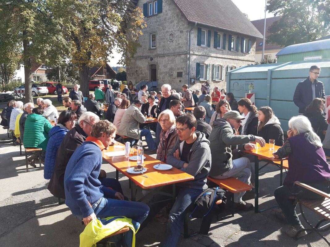 ENGSTINGEN-KOHLSTETTEN. Bei bestem Wetter fand jetzt die Kohlstetter Kirbe statt. Die evangelische Kirchengemeinde und der Kohlstetter Laden luden zum vierten Mal gemeinsam zu diesem Fest zwischen Kirche und Backhaus ein. Viele aus dem Dorf hatten Kirbekuchen vorbereitet, die im Backhaus frisch gebacken wurden. Frischer Süßmost wurde direkt auf dem Platz gepresst.