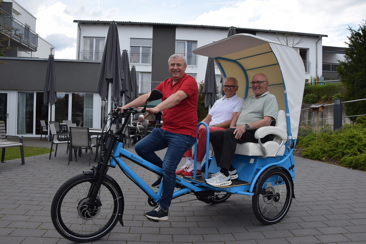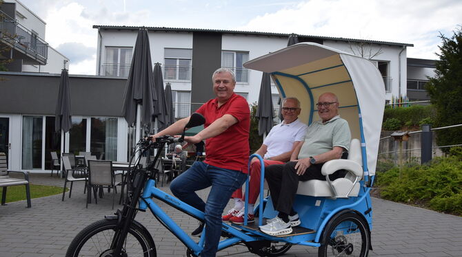 Vor zwei Jahren trat dann Gemeinderätin Tanja Schmidt an die Freundeskreis-Vorstände Leonhard Hasting und Rolf Breining mit der Idee einer Rikscha heran, die den Bewohnern eine neue Mobilität ermöglichen könnte. Und nachdem Sponsoren gefunden wurden - immerhin kostet das in Nehren und Dußlingen hergestellte Gefährt trotz eines Freundschaftspreises noch 13.500 Euro - konnte nun die Einweihung gefeiert werden, zu der zahlreiche Ehrenamtliche des Freundeskreises gekommen waren. »Sie dürfen als kleine Anerkennung zuerst einmal eine Runde drehen, später dann die Bewohner«, betonte Eichinger.