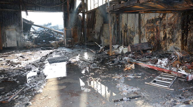 Die Lagerhalle des Reutlinger Unternehmens Camperkraftwerk wurde durch das Feuer völlig zerstört.
