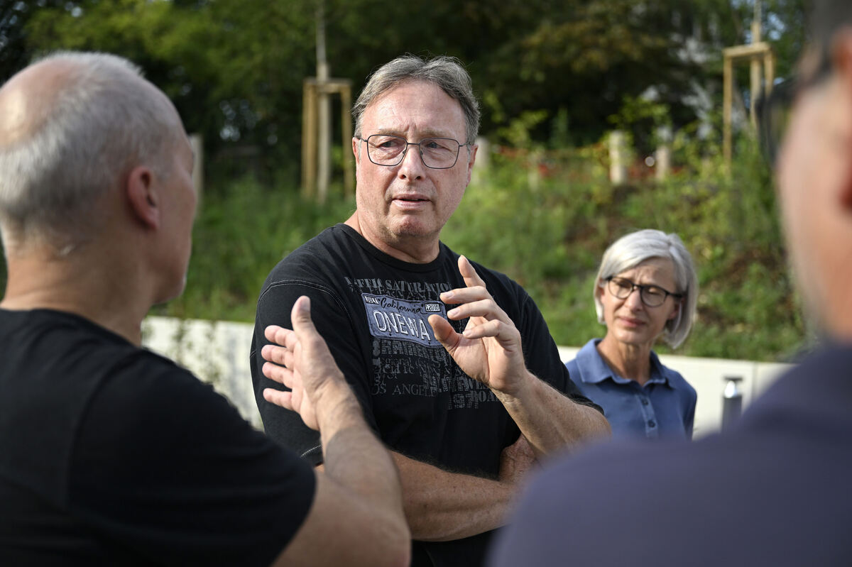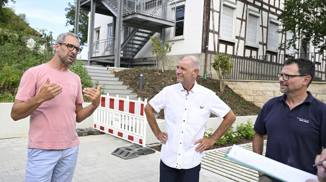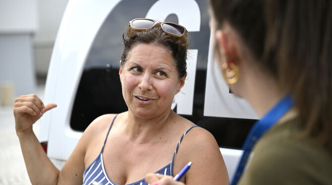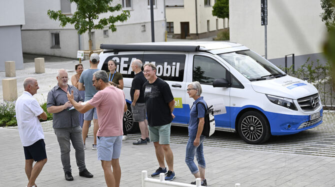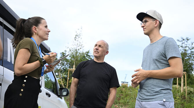 Umlagert: GEA-Mobil und Reporter in Ofterdingen.