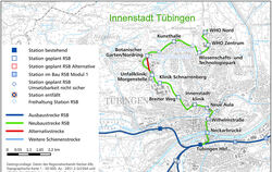TÜBINGEN. Braucht es in Tübingen eine Innenstadtstrecke der Regionalstadtbahn? Darüber gehen die Meinungen in der Unistadt weit auseinander. Auch im Gemeinderat: Dort ist die Mehrheit für die Innenstadtstrecke, die Tübinger Liste und die Linken sind nicht überzeugt. Die Entscheidung fällt in einem Bürgerentscheid am Tag der Bundestagswahl am 26. September. Die Stadtverwaltung hat früh auf die Diskussionen um die Innenstadtstrecke reagiert und nach einem Alternativenworkshop im November 2018 zwei Planungsbüros mit der Prüfung von Alternativen beauftragt. Nach einem Zwischenbericht im Oktober 2020 haben die Planer am Mittwochabend die Endergebnisse ihrer Untersuchung präsentiert.