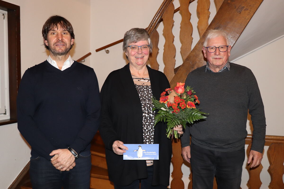 Martin Hikel (links) und Walter Stärk verabschiedeten Hannelore Hagmaier als abgeordnete Vertreterin der Stadt Münsingen aus der Vorstandschaft. FOTO: BLOCHING
