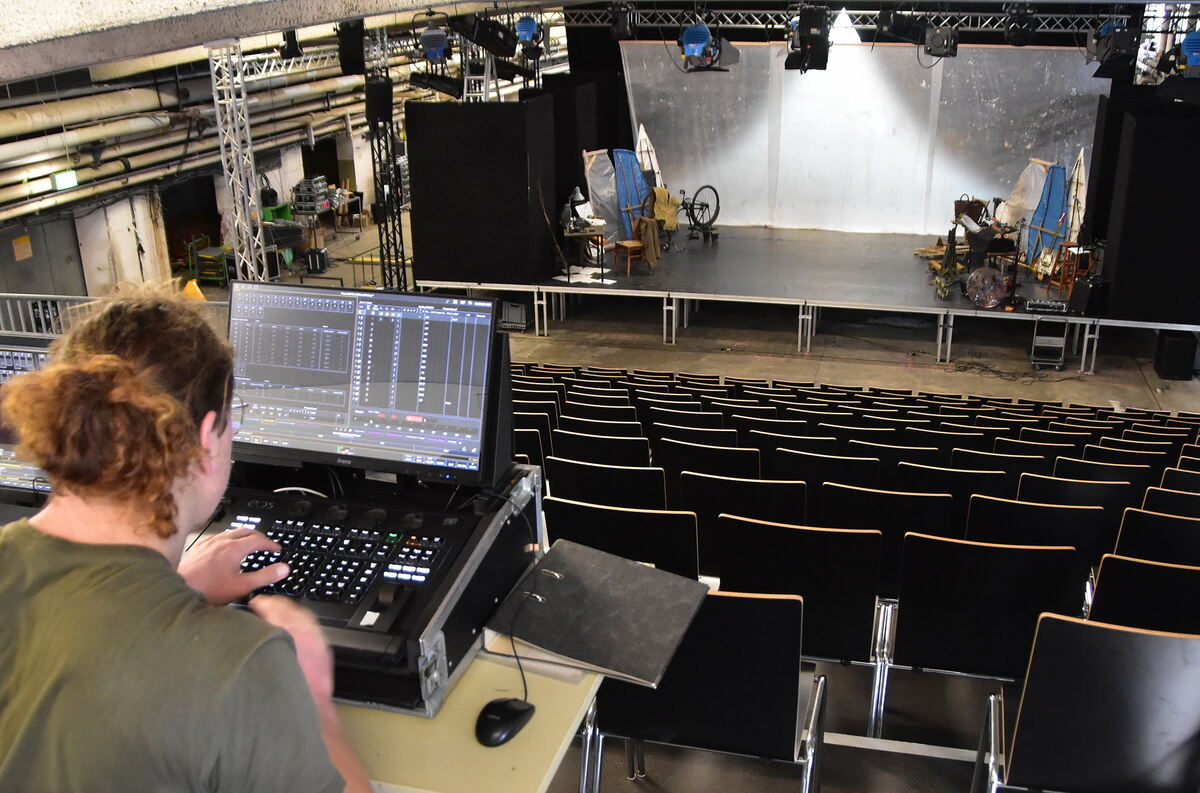 Letzter Check an der Hauptbühne in der Pausa-Bogenhalle für den Theaterstart am Freitag