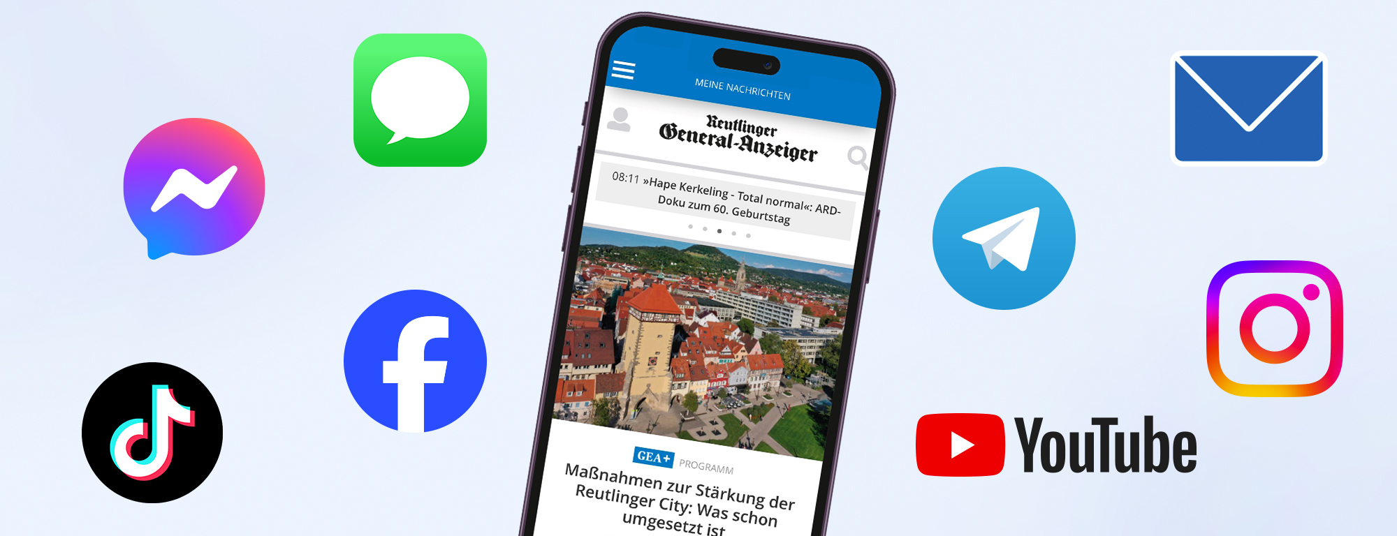 Der Reutlinger General-Anzeiger bietet viel mehr als die gedruckte Zeitung, das E-Paper und die GEA-Webseite. Auch über Newsletter per E-Mail, per Messenger direkt aufs Smartphone oder über diverse Kanäle in den sozialen Medien können Sie sich auf dem Laufenden halten. Eine Übersicht.