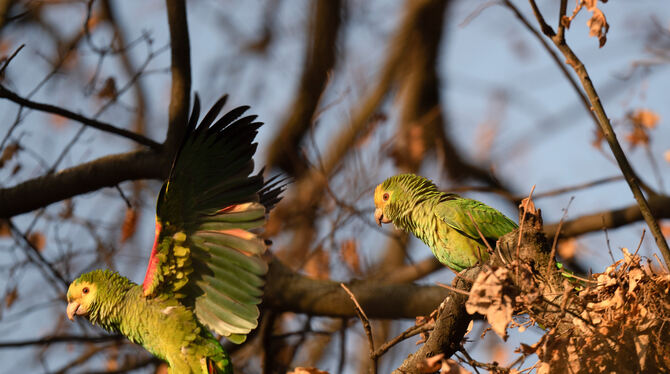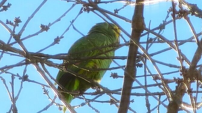 Ein Schnappschuss: GEA-Leser Siegfried Hagenlocher fotografierte einen frei fliegenden Papageienvogel in seinem Garten in Reutlingen-Betzingen.