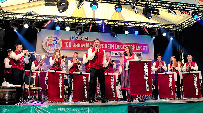 Mit einem tollen Konzert am Samstag begann der Musikverein Degerschlacht die Jubiläums-Festwoche zum 100-jährigen Bestehen. Unter den Gratulanten waren Oberbürgermeister Thomas Keck, Bezirksbürgermeisterin Ute Dunkl und der Vorsitzende des Blasmusikverbands Neckar-Alb Steffen Haap. Als Gäste spielten die Kaiser Musikanten aus Wien.