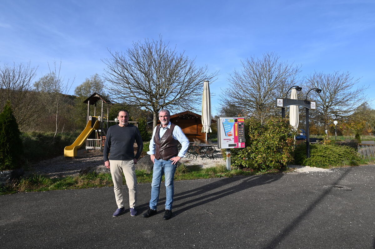 Jaroslav (links) und Christof Schwarzer, Besitzer der Klostermühle, stehen vor dem Biergarten. Ihnen wurde der Pachtvertrag für die Freiluftwirtschaft zum Ende des Jahres gekündigt.