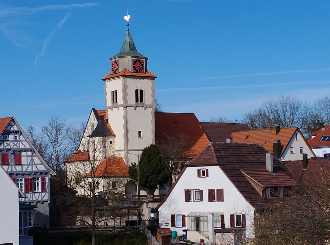 Die sehr sehenswerte Martinskirche wurde 1912 durch den bekannten Architekten Martin Elsäßer (1884–1957) geplant und erbaut und ist als Jugendstildorfkirche eine Besonderheit. Die breit gelagerte Form des Schiffs, die Strukturierung der Uhrenstube mit senkrechten Lisenen, die Ornamentik der Turmgesimse, die Form der äußeren Stützpfeiler und im Innern die Malereien der Emporenbrüstung stehen für die Kunstepoche um die Wende zum 20. Jahrhundert.