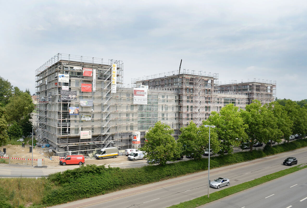 »Blue Village« entlang der vierspurigen Stadtautobahn: 350 Wohneinheiten werden gebaut. FOTO: PIETH