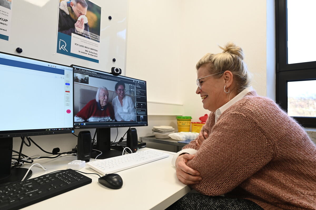 So sieht das aus, wenn der »HeimDoc« mit Menschen im Altenheim spricht. Im Bild Dr. Zsusza Märkle, ärztliche Koorodinatorin ambulante Medizin, sowie ihre 96-jährige Patientin.