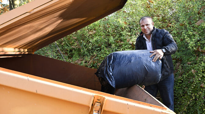 REUTLINGEN. Wer Laub im Garten oder auf dem Gehweg zusammenfegt, packt es in große Säcke und fährt es zum Grüngutplatz. Doch diese Säcke kosten Geld und nicht jede oder jeder hat ein Auto. Da es sich in dem als »Gartenstadt« geplanten Stadtteil Orschel-Hagen zumeist um städtische Bäume handelt, deren Laub auch Privatleute zu dieser Jahreszeit zusammenrechen und aufsammeln, stellen die Technischen Betriebsdienste Reutlingen (TBR) dort seit einigen Jahren Container auf, in denen die Bürger Laub entsorgen können.