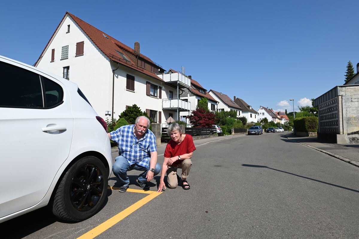 Angelika und Thomas Baltzer empfinden die Parkraumbewirtschaftung in der Kantstraße als Ärgernis. Unter anderem, weil durch die Markierungen einige Parkplätze entfallen seien. FOTO: ZENKE