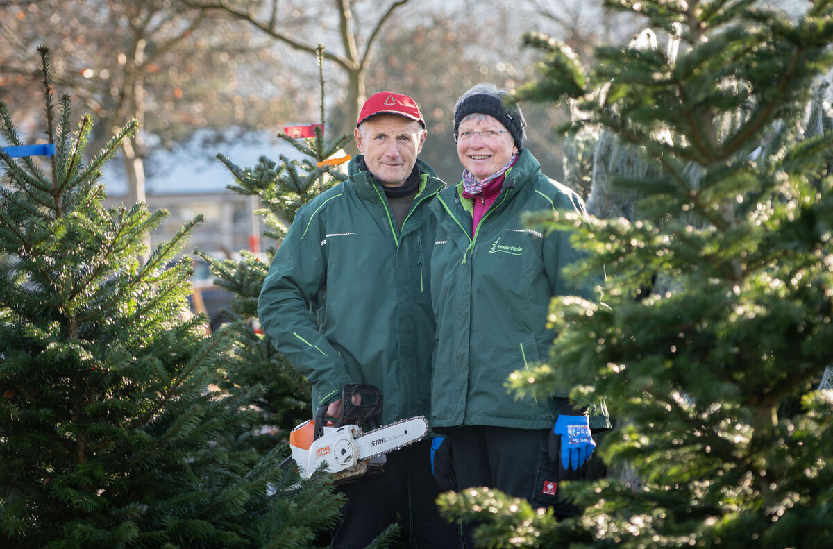 Die Holzelfinger Eheleute Hans und Hella Fischer gehören zu den ganz treuen Händlern des großen Reutlinger Christbaummarkts auf dem Freibad-Parkplatz an der Kreuzeiche.