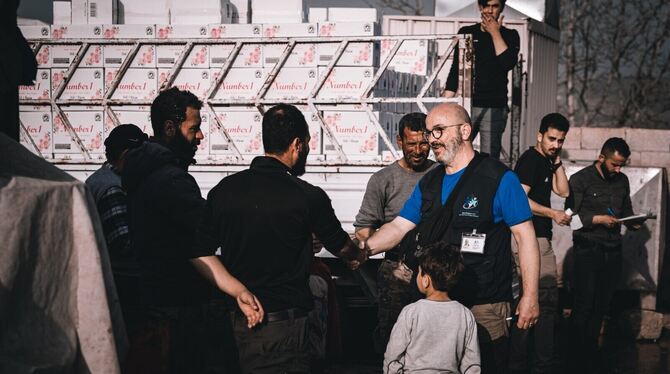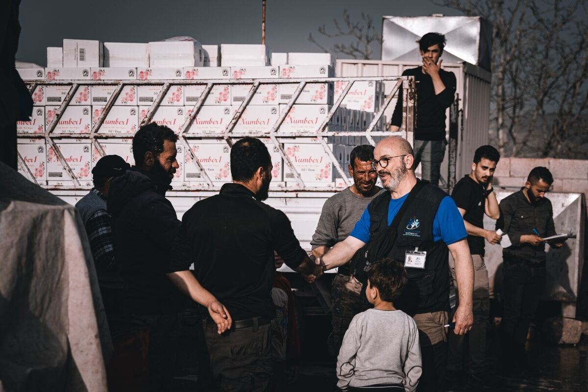 Musketier-Vorsitzender Markus Brandstetter bei der Verteilung der Hilfsgüter in Afrin.