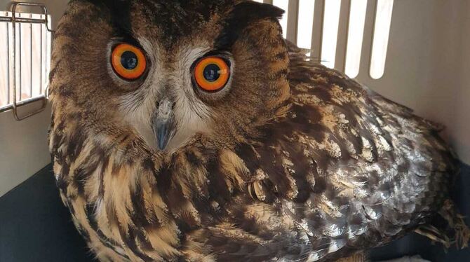 REUTLINGEN. Es ist ein rührender Moment, wenn sich ehemals verletzte Wildtiere erholen und wieder in die Freiheit entlassen werden. Der Uhu Klara flog kurz vor Weihnachten über ein Reutlinger Freigehege für Hühner und verfing sich in einem Netz. Das war über dem Gelände gespannt, um die Hühner zu schützen. Die Eule hatte Glück im Unglück, denn der Hühnerbesitzer entdeckte sie noch rechtzeitig und verständigte dann das Reutlinger Tierheim. Dort fiel auf, dass ein Fuß des Tiers sehr schwach war. »Wir konnten nicht einschätzen, wie schlimm die Lage war, da wir mit so einem Tier keine ähnliche Erfahrung hatten«, sagt Sabine Mayer vom Kleintierzentrum.