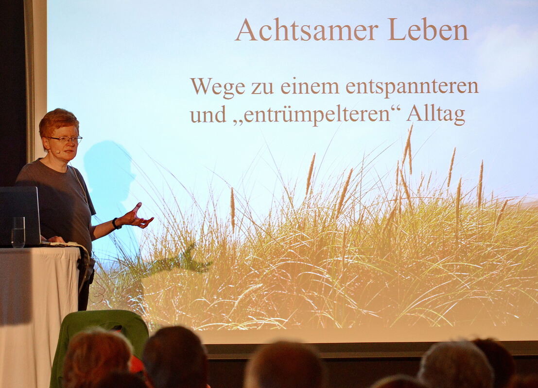 Soll sich etwas ändern, das betont die Sozialpädagogin und Buchautorin aber auch, führt kein Weg daran vorbei, sich dem Istzustand zu stellen. »Eine Durcheinanderkiste wird nicht aufgeräumter, wenn ich sie zu mache.« Genaues Hinschauen und Hinterfragen sind in verschiedenen Lebensbereichen möglich. Etwa beim Thema Zeit. »Welcher Termin muss nicht sein?«, lautet hier die zentrale Frage. Auch das Handy hin und wieder auszustellen, verschafft Zeit. Ebenso können Beziehungen genauer betrachtet werden: welche tun gut, und mit wem sollte eine ungute Situation besprochen werden.