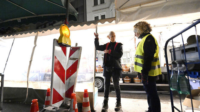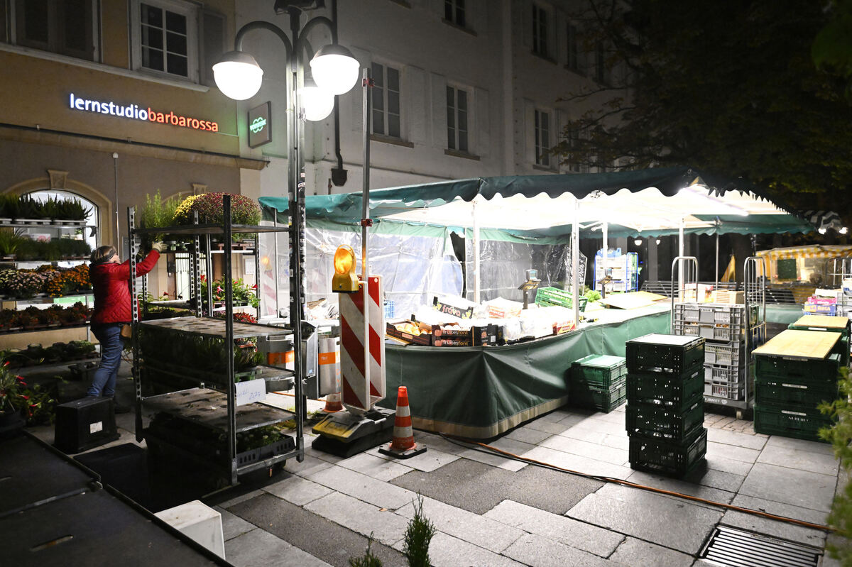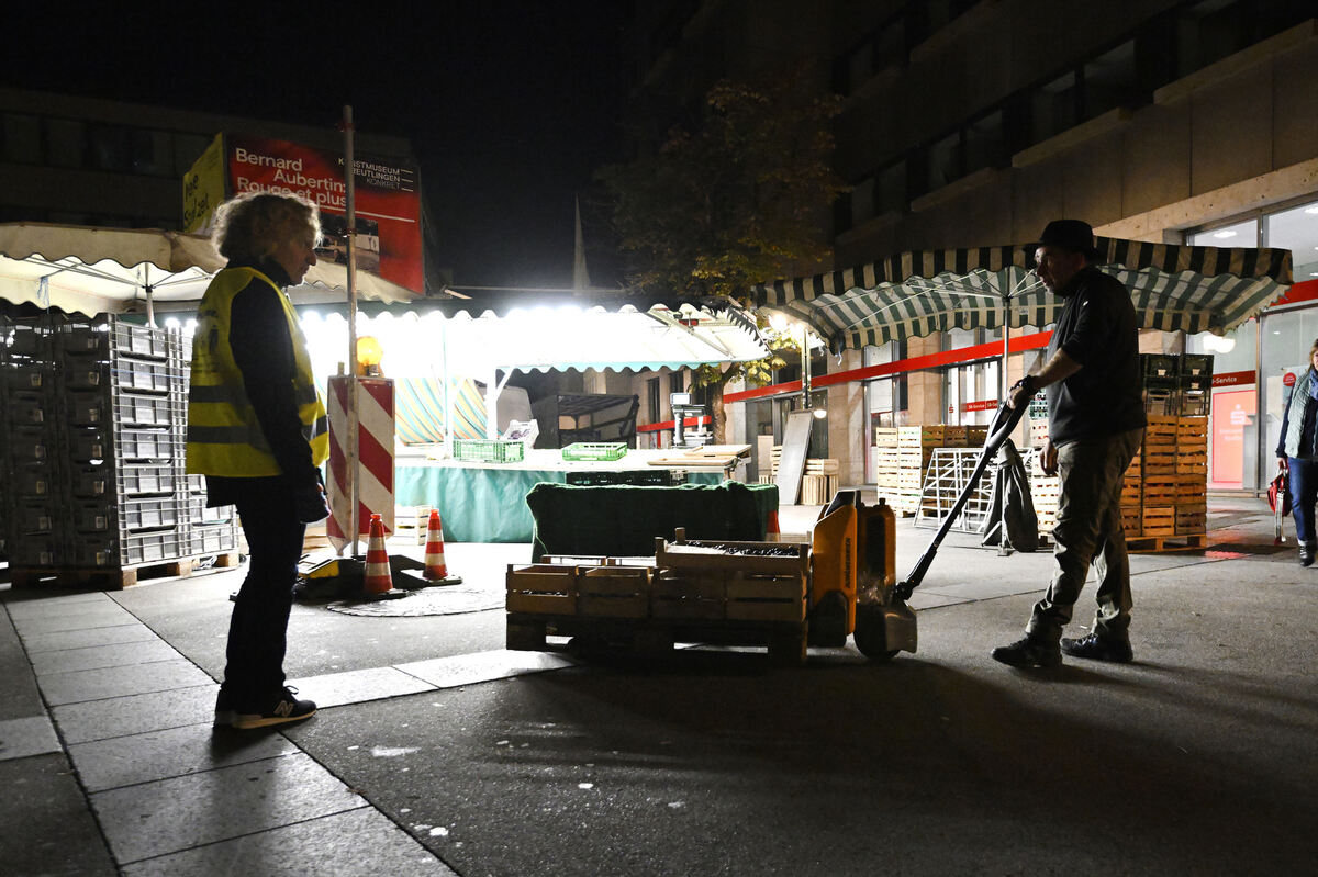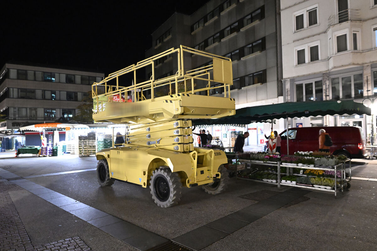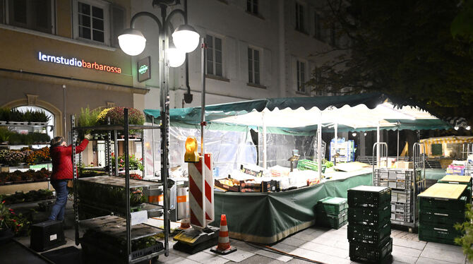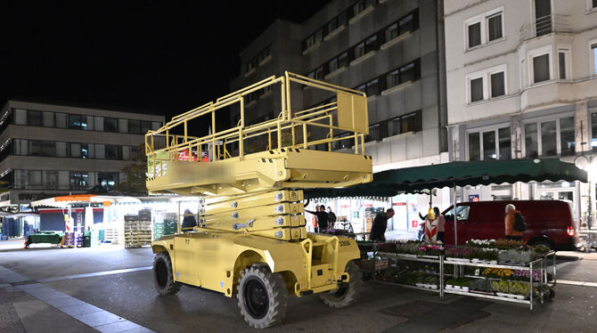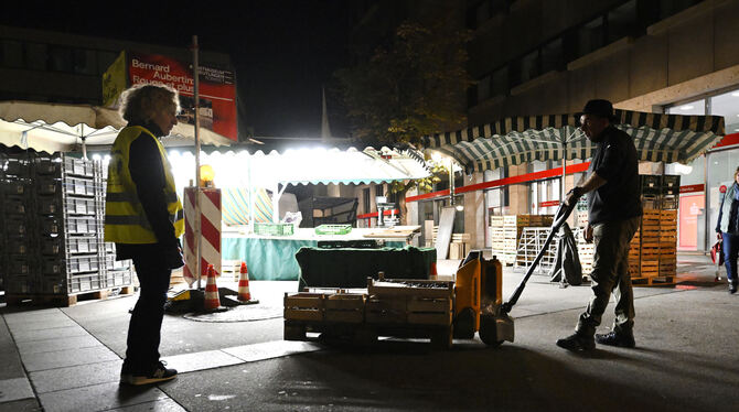 An diesem Samstagmorgen ab 4 Uhr Ort eines besonderen »Fahrversuchs«: der Reutlinger Marktplatz, auf dem zu diesem Zeitpunkt die Beschicker des Wochenmarktes aufbauen.